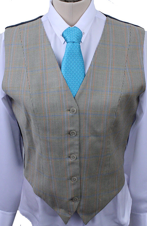 Vest LeCheval Tan with Coral and Blue Windowpane