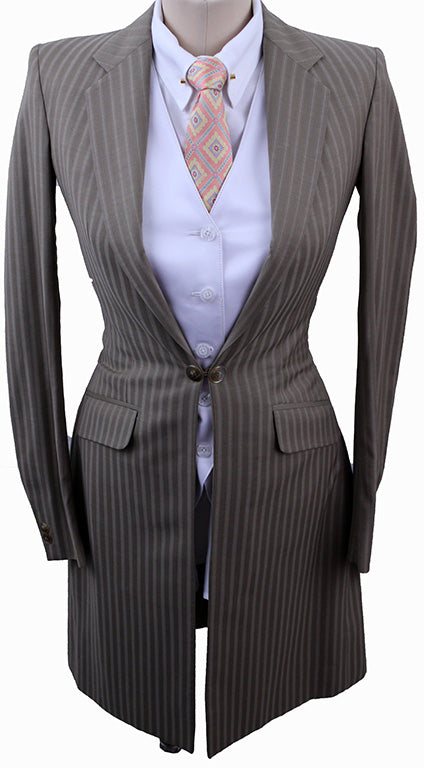 Day Suit DeRegnaucourt Brown Shadow Stripe with Aqua Pinstripe