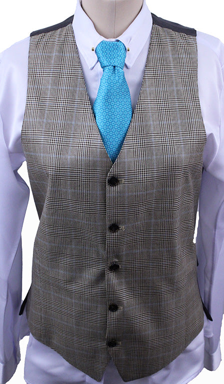 Men's Vest Marsha DeArriaga Tan with Brown Windowpane