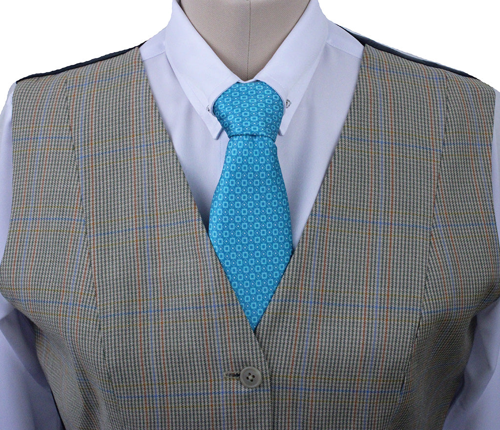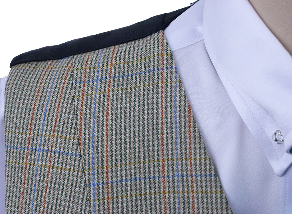 Vest LeCheval Tan with Coral and Blue Windowpane
