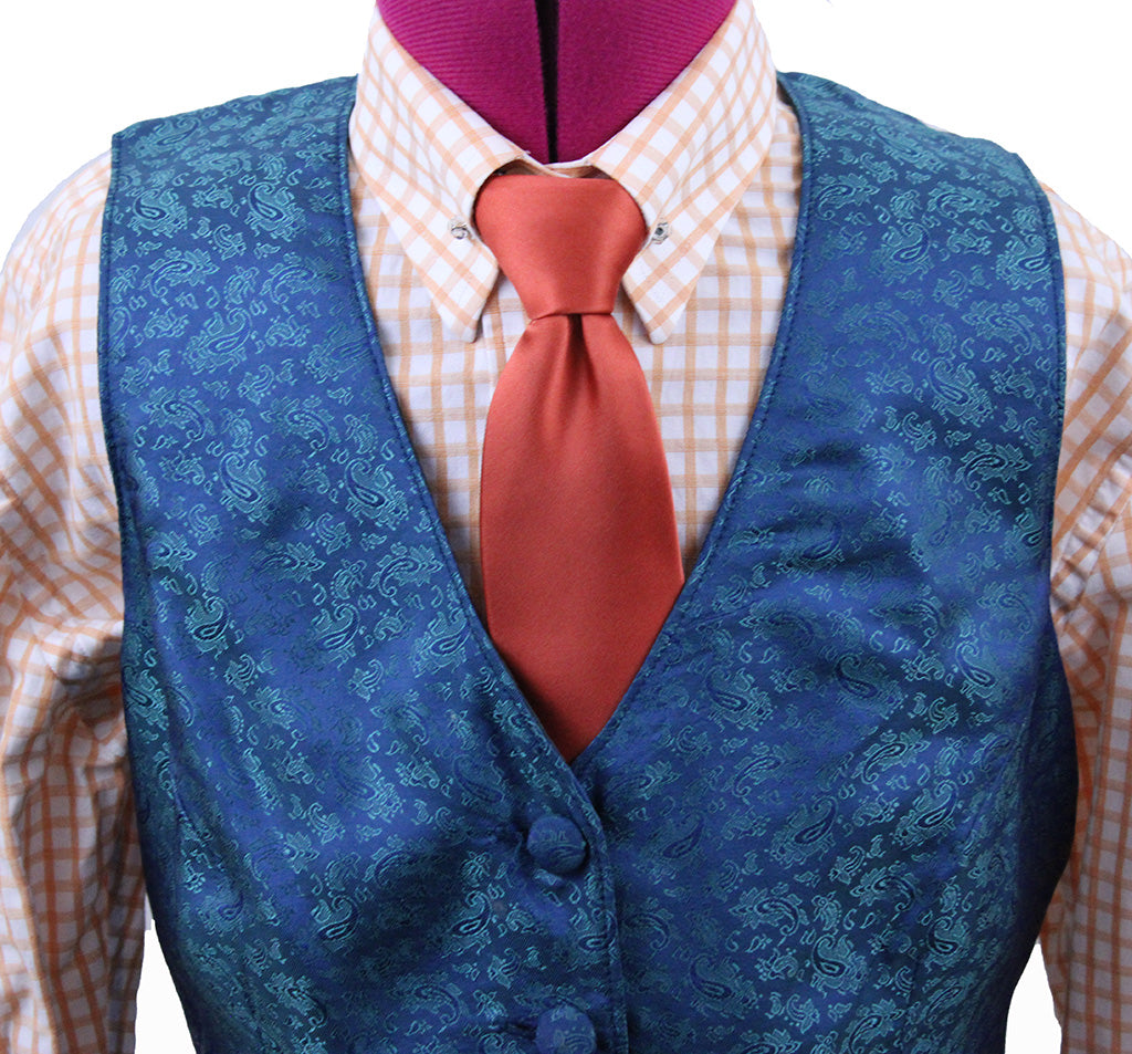Vest Show Season Teal Floral Brocade Sheen